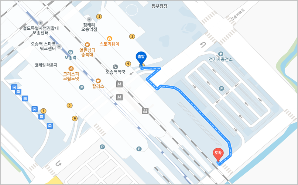 ¿À¼Û¿ª ¿¬¼ö¿ø ¼ÅƲ¹ö½º ½ÂÂ÷Àå ¿À¼Û¿ª 3¹ø Ãⱸ Ⱦ´Üº¸µµ °Ç³Ñ µµº¸ ¾à 130m À̵¿ ³ë¼±°ø¿ë¹ö½º ÁÖÂ÷Àå Á¾·áÁöÁ¡ÀÎ 2Â÷¼± µµ·Îº¯ (¼Ò¿ä½Ã°£ : 1½Ã°£)